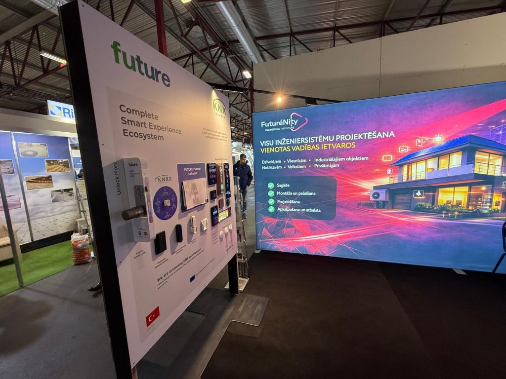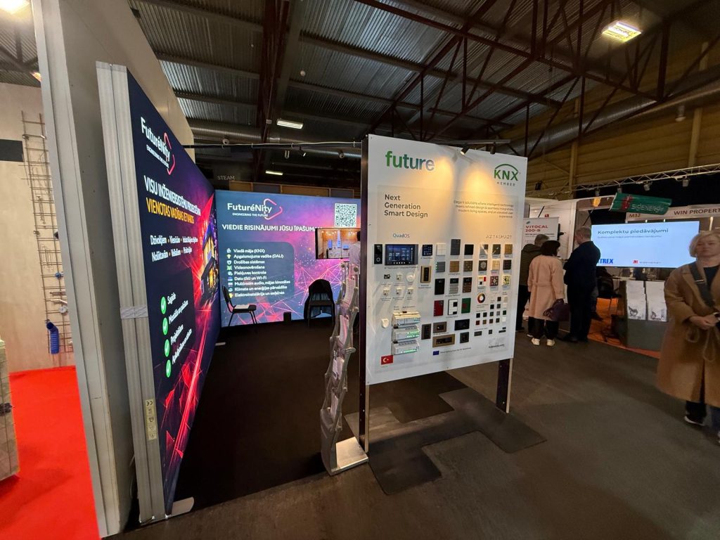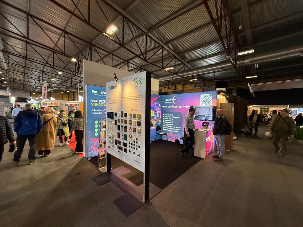 Paldies Mihailam, / FutureNity KNX meistariem, par iespēju viņu stendā, piedalīties izstādē “Māja”, ar nupat 2 ned atpakļ no Frankfurtes Light & Building atvesto Future stendu, ar jaunajiem t.sk. koncept slēdžiem, mūsu partnera, Eiropas lielākā atslēgu ražotāja Kalle lock pirmo KNX elektrisko atslēgu, jaunajām planšetēn un citiem produktiem